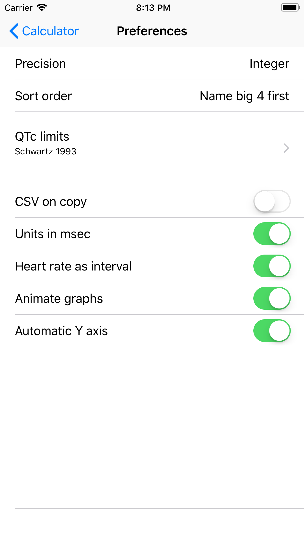 The EP QTc app was originally intended just as a demo app for the QTc library, but it has numerous features making it useful in its own right. Use it to calculate the QTc and QTp using 33 formulas. Graph and do statistics on the results. Copy the results to spreadsheet programs. Options to change precision, sort the results, use different QTc cutoffs from the literature and others are all available. The source code is on GitHub, and I hope the app will soon be on the Apple App Store.